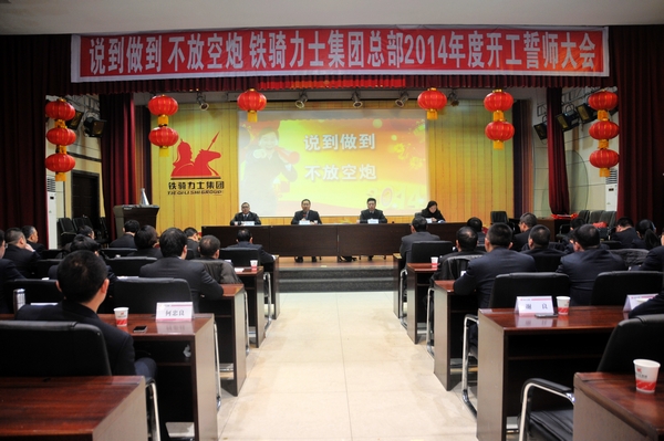 随着一(yi)聲聲莊嚴的(de)承(cheng)諾,2月11日(ri),鐵騎力(li)士集(ji)團(tuán)總部(bu)2014年(nian)度開工(gong)誓師大(da)會在(zai)綿陽(yáng)總部(bu)學(xué)術(shù)報告廳舉行。董事長(zhang)雷文(wén)勇、總裁馮光德(dé)、執行總裁李全、副董事長(zhang)楊秋平及(ji)總部(bu)全體(ti)員(yuan)工(gong)參加(jia)了(le)大(da)會。