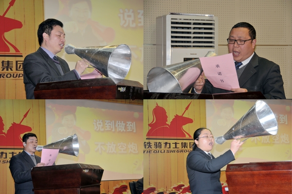 總裁馮光德(dé)、執行總裁李全、各職能(néng)部(bu)們(men)經(jing)理(li)分(fēn)别用(yong)比一(yi)分(fēn)鍾快一(yi)秒(miǎo)的(de)“59秒(miǎo)”方(fang)式(shi),大(da)吼出各自2014年(nian)的(de)目(mu)标承(cheng)諾,接受大(da)傢(jia)監督,力(li)争全面完成(cheng)各項(xiang)目(mu)标,爲(wei)2014年(nian)取得成(cheng)功打下堅實的(de)基礎。
